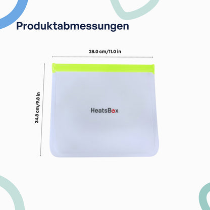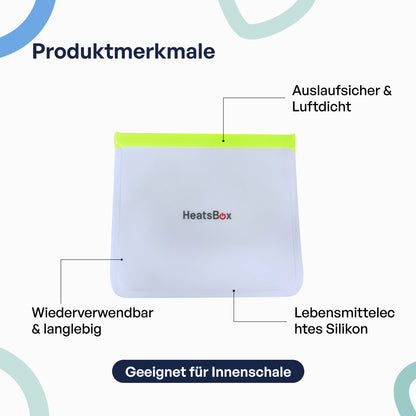 Die Auslaufsicheren Beutel sind aus 100 % lebensechten Materialien. Zudem sie sind - wie alle HeatsBox Produkte - 100 % BPA-frei.
