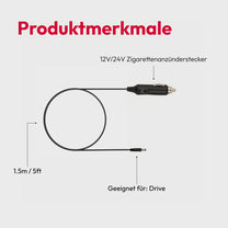 1× 12V/24V Stromkabel mit Zigarettenanzünderstecker