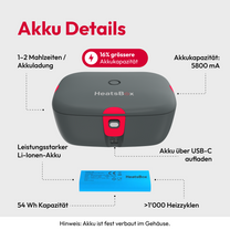 Die HeatsBox GO kann jedoch einfach zwischen den Mahlzeiten via USB-C aufgeladen werden.