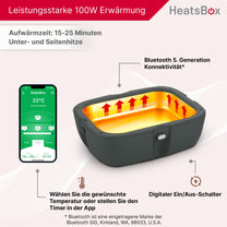 Bestimme bereits Zuhause am Morgen alle Einstellungen zum Erwärmen wie z.B. den Timer und die Zieltemperatur. Danach startet die HeatsBox von ganz allein.