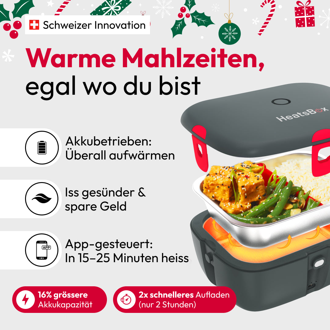 Stelle ein, wann du essen möchtest, und die HeatsBox startet automatisch, damit dein Essen rechtzeitig zur Mittagspause heiss ist.