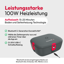 Wenn der Heizvorgang beendet ist, schalte das Gerät aus und geniesse eine gesunde, warme Mahlzeit - egal ob im Büro, unterwegs oder im Freien.