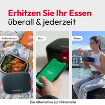 Wenn der Heizvorgang beendet ist, schalte das Gerät aus und geniesse eine gesunde, warme Mahlzeit - egal ob im Büro, unterwegs oder im Freien.