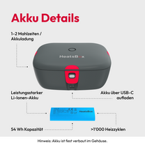 Die HeatsBox GO kann jedoch einfach zwischen den Mahlzeiten via USB-C aufgeladen werden.