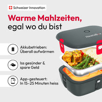 Stelle ein, wann du essen möchtest, und die HeatsBox startet automatisch, damit dein Essen rechtzeitig zur Mittagspause heiss ist.