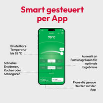 Bestimme bereits Zuhause am Morgen alle Einstellungen zum Erwärmen wie z.B. den Timer und die Zieltemperatur. Danach startet die HeatsBox von ganz allein. Ideal nicht nur für Schulkinder.