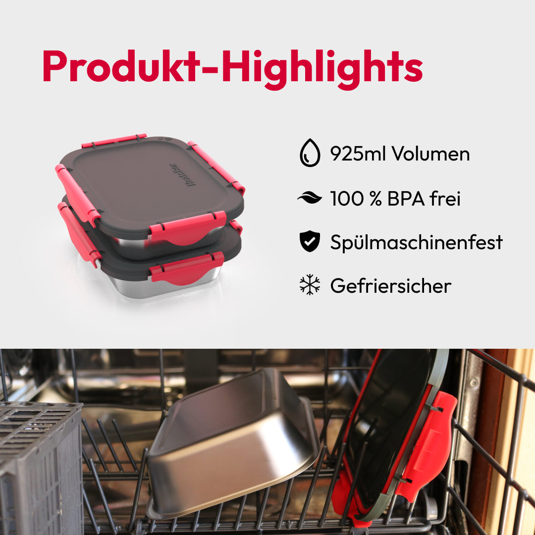 • Enthält 2 Innenschalen plus Deckel und Teiler, für unterschiedliche Mahlzeiten
