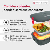 Calienta tus comidas fácilmente en el coche, camper o camión con su cargador de 12/24V.