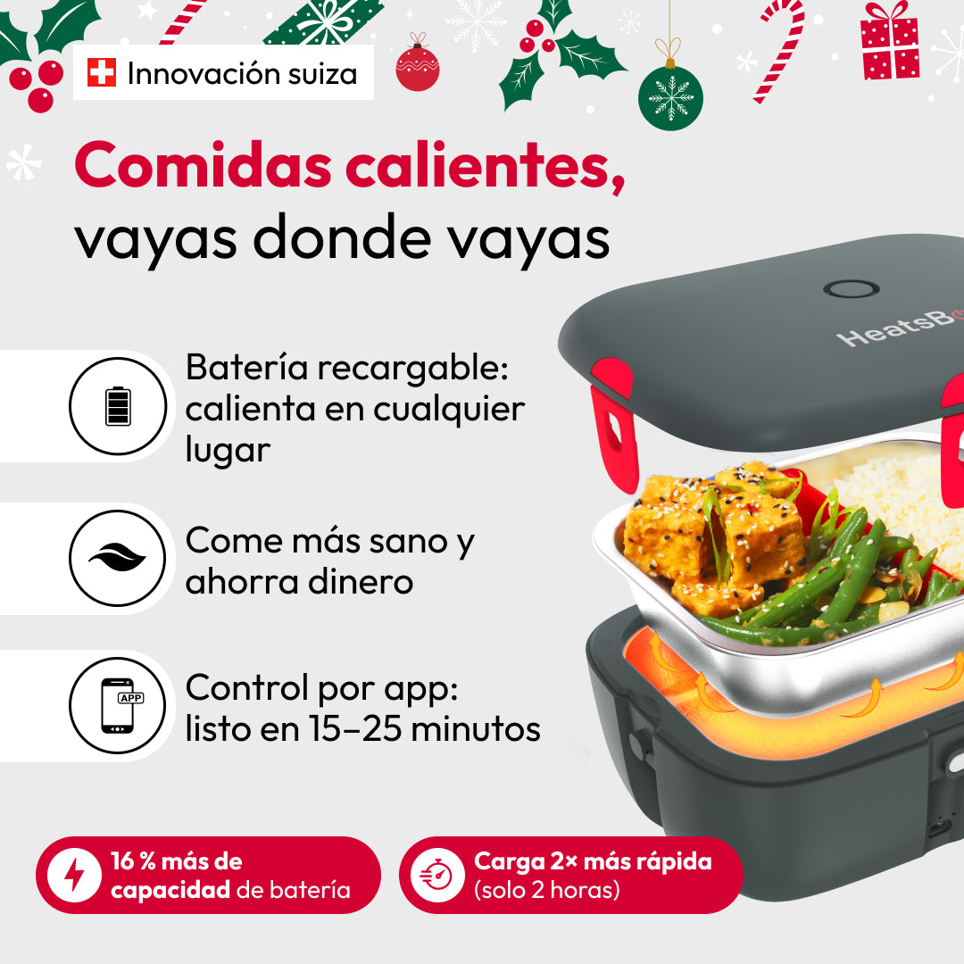 • Con batería, disfruta comidas calientes en cualquier lugar y momento
