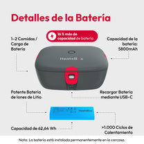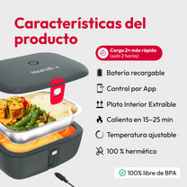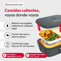 • Con batería, disfruta comidas calientes en cualquier lugar y momento