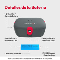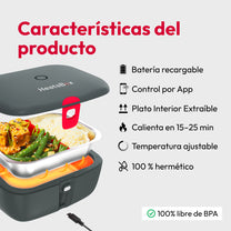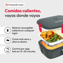 Calienta tu comida en cualquier momento y lugar en solo unos minutos gracias a la batería integrada.