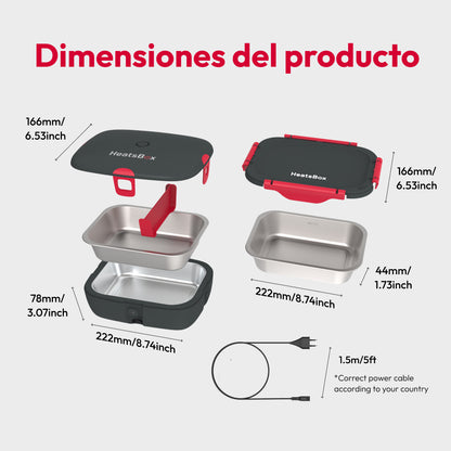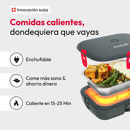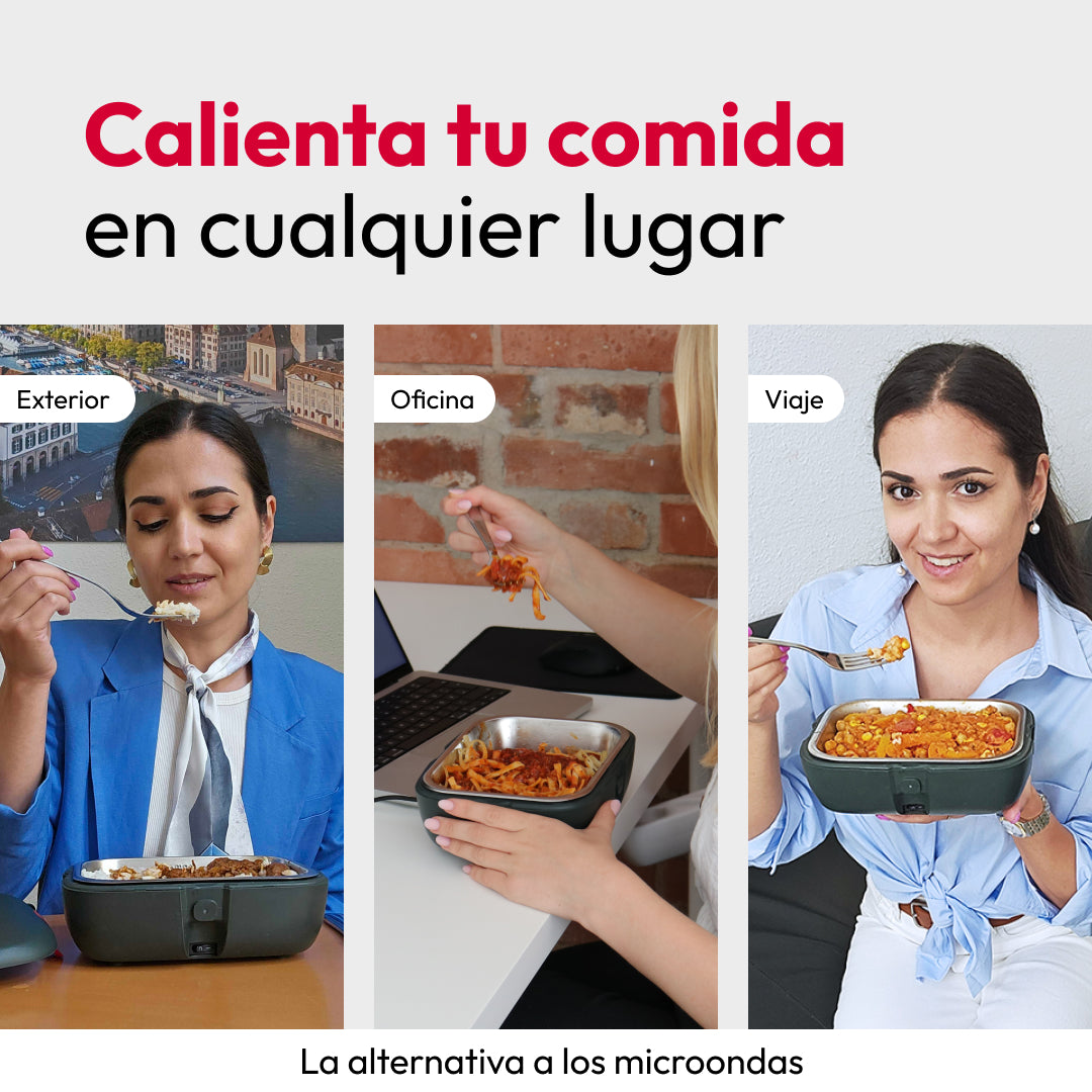Disfruta de la comodidad de una comida caliente en cualquier lugar gracias a la conexión a la corriente, sin necesidad de microondas.