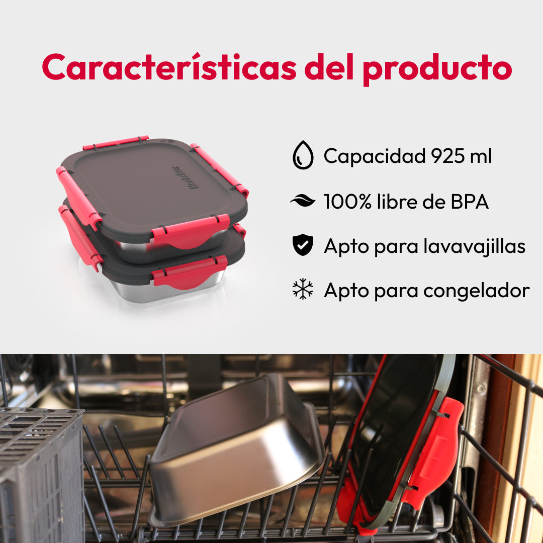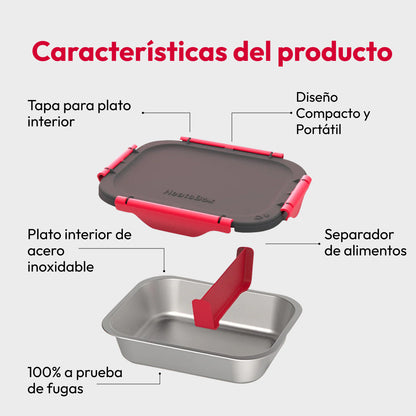 • Incluye 2 platos interiores más tapas y divisores para diferentes comidas.