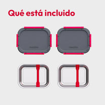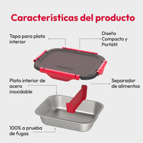 • Incluye 2 platos interiores más tapas y divisores para diferentes comidas.