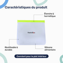 Les sacs étanches sont fabriqués à partir de matériaux de qualité alimentaire et, comme tous les produits HeatsBox, sont garantis sans BPA à 100 %.