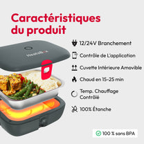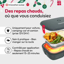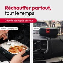 Profite du confort d'un repas chaud partout grâce à l'alimentation secteur – sans micro-ondes.