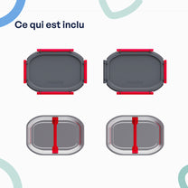 • Comprend 2 plats intérieurs, des couvercles et des séparateurs pour différents repas.