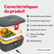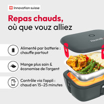 Réchauffez votre repas partout et en quelques minutes grâce à sa batterie intégrée.
