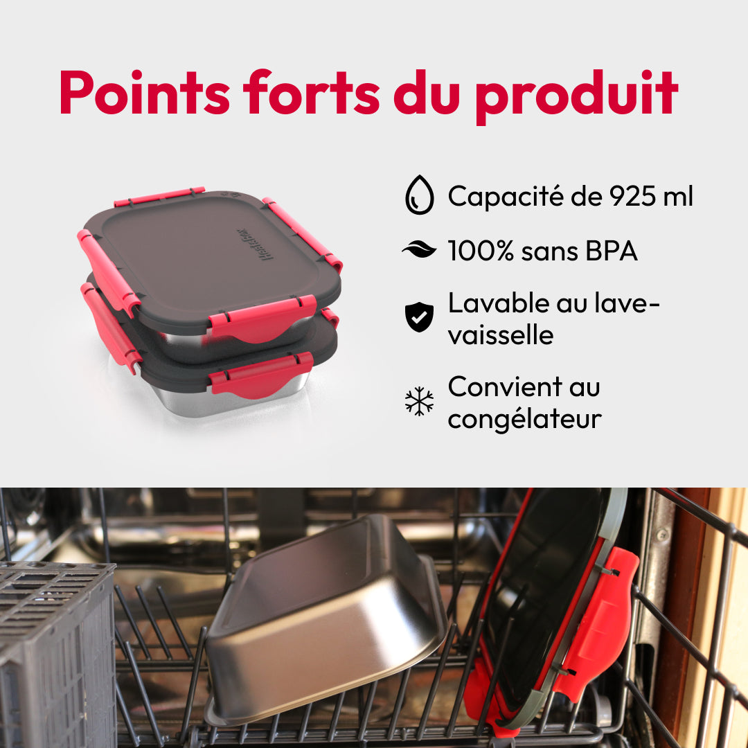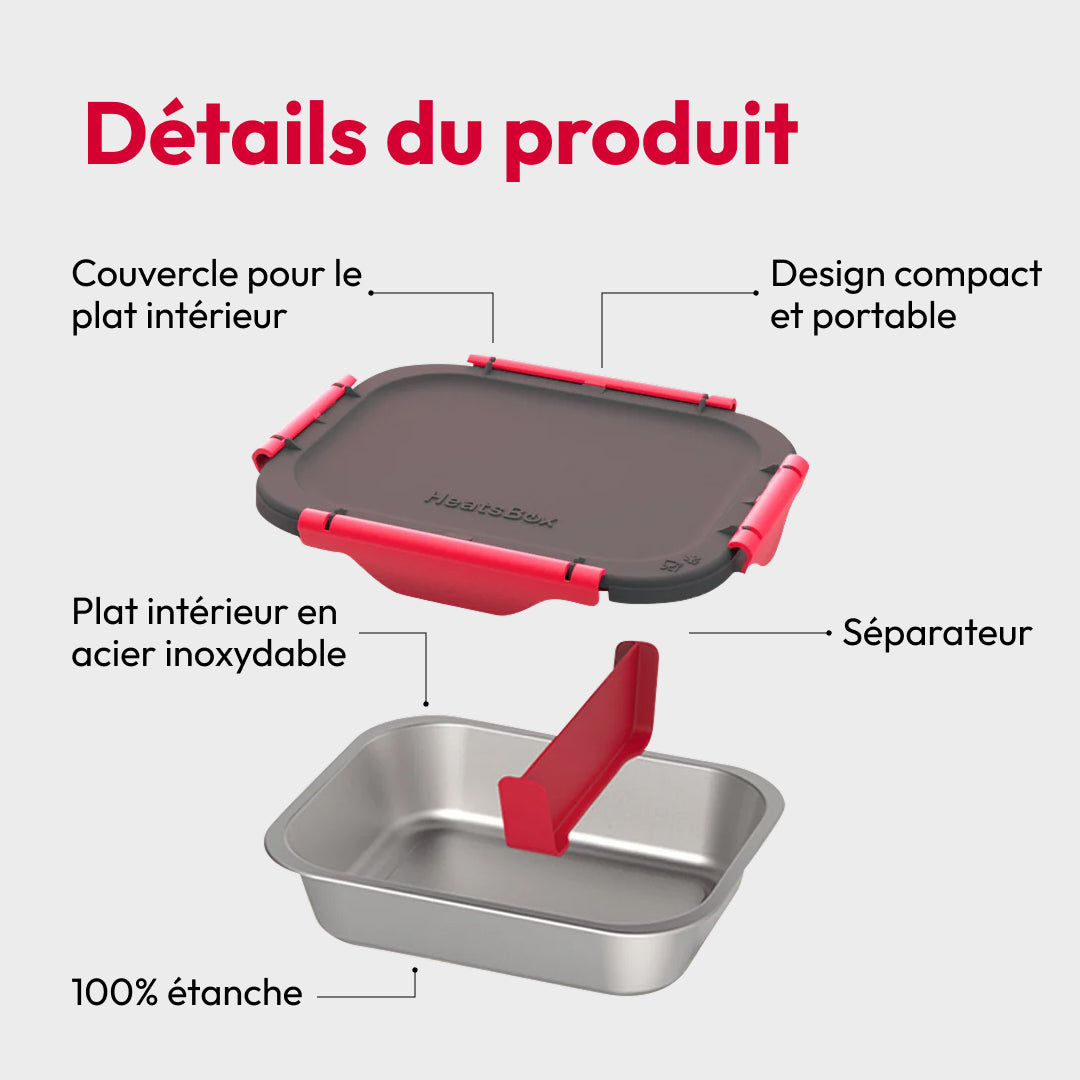 • Comprend 2 plats intérieurs, des couvercles et des séparateurs pour différents repas.