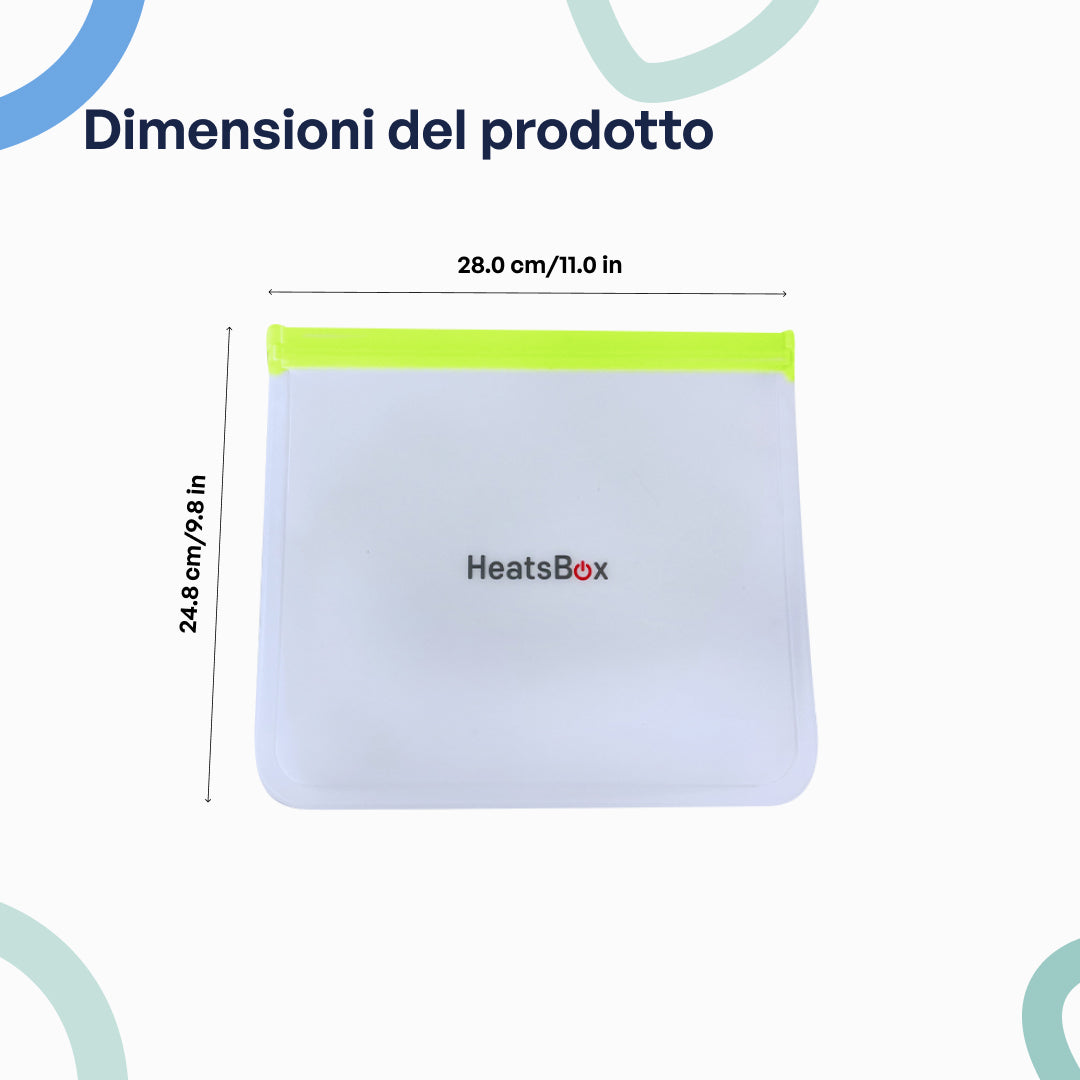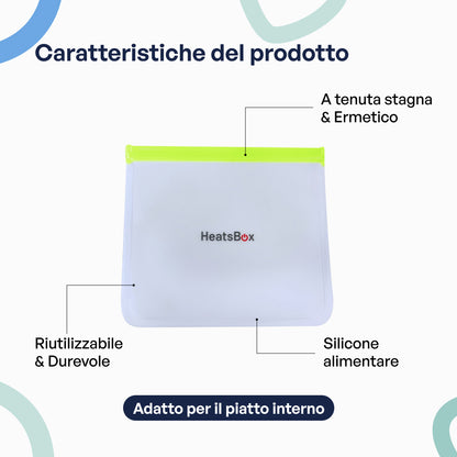 Le buste ermetiche sono realizzate al 100% con materiali sicuri. Come tutti i prodotti HeatsBox, sono al 100% prive di BPA