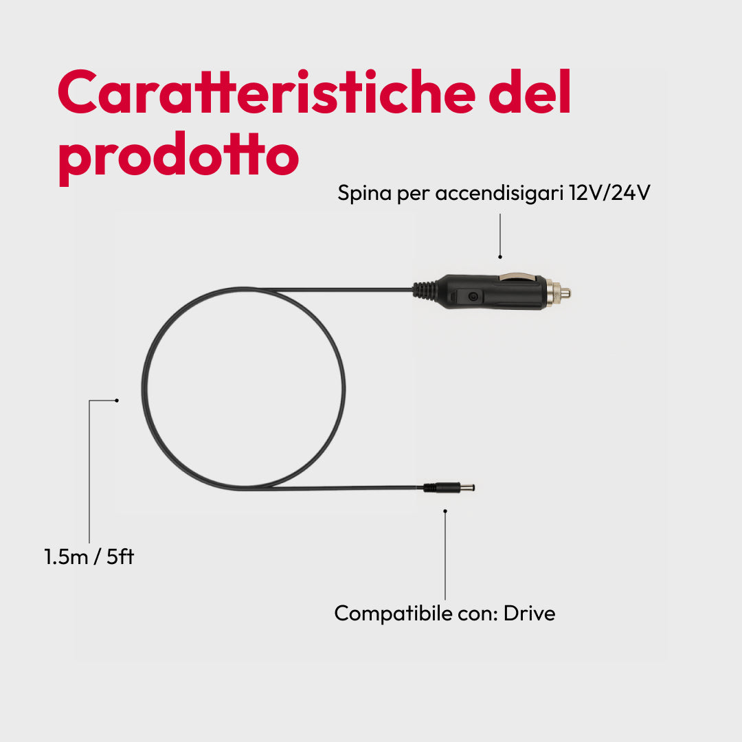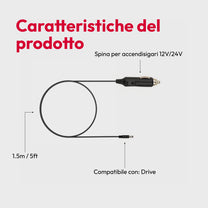 1× Cavo di alimentazione 12V/24V con spina per accendisigari
