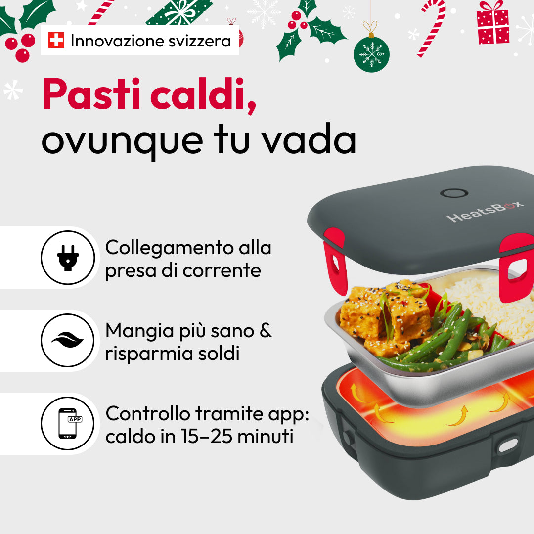 Imposta l’ora in cui desideri mangiare e HeatsBox si avvierà automaticamente, in modo che il cibo sia caldo in tempo per la pausa pranzo.