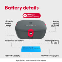 Heat up your meal anywhere & anytime thanks to the built-in battery within minutes.