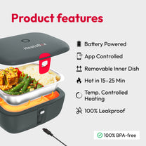 Choose your preferred heating time with the app or manual controls, and your meal will be perfectly warmed in just 15-25 minutes, wherever you are.