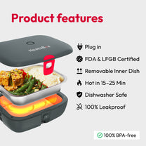• Plug-in heating for hot meals in 15-25 minutes, perfect for office or home