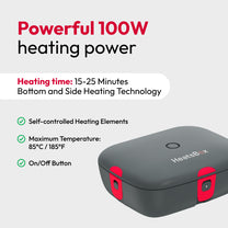 Simply push the On/Off Switch and within just 15-25 minutes, the HeatsBox Style will heat up your food to 85°C.