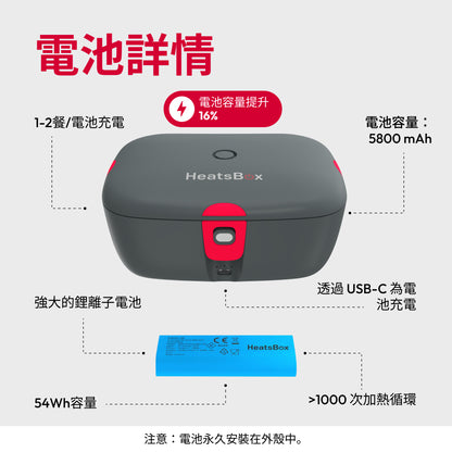 內置電池可隨時隨地加熱美食,幾分鐘內即可享用熱騰騰的美食。