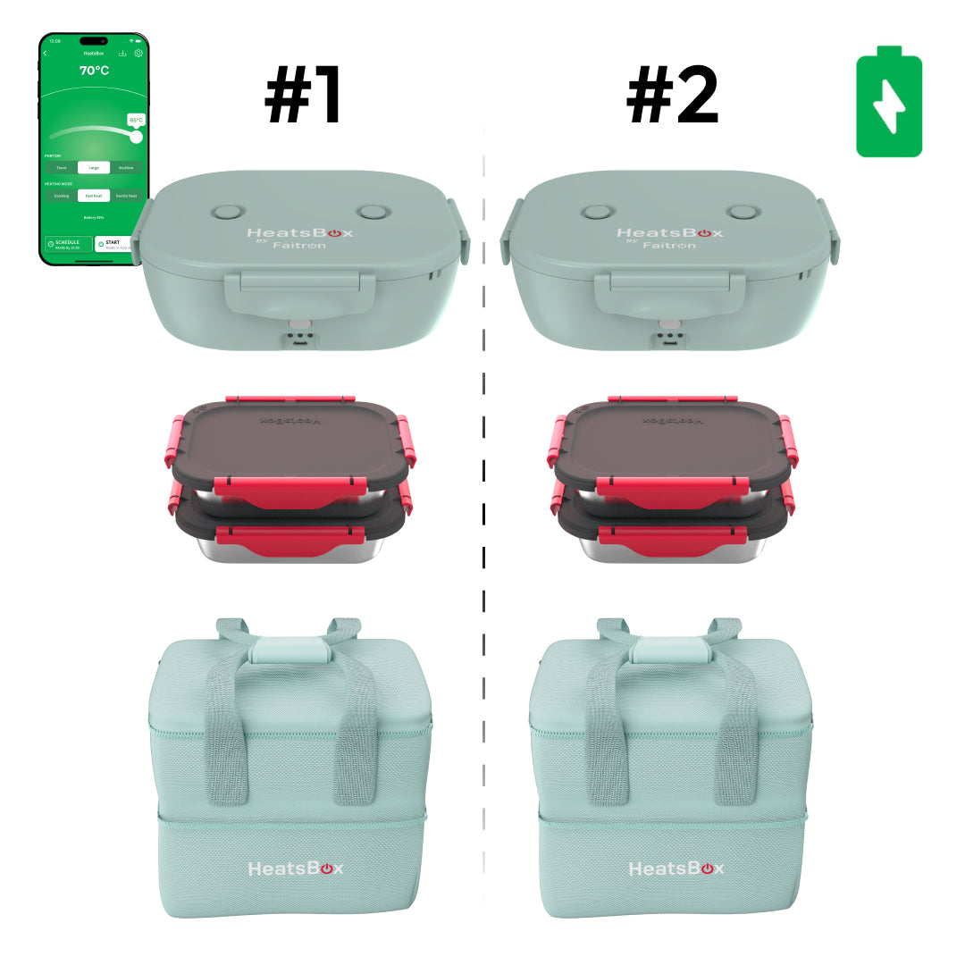 我們推薦使用電池供電的 HeatsBox GO Light,以確保您的餐點能隨時隨地準時加熱,而無需依賴電源插座。您可以輕鬆設定兒童鎖。透過計時器,您可以在早上上學前,輕鬆將孩子的 HeatsBox 設定到所需的溫度和時間。這樣,他們最喜歡的熱騰騰的餐點就能準時享用了。